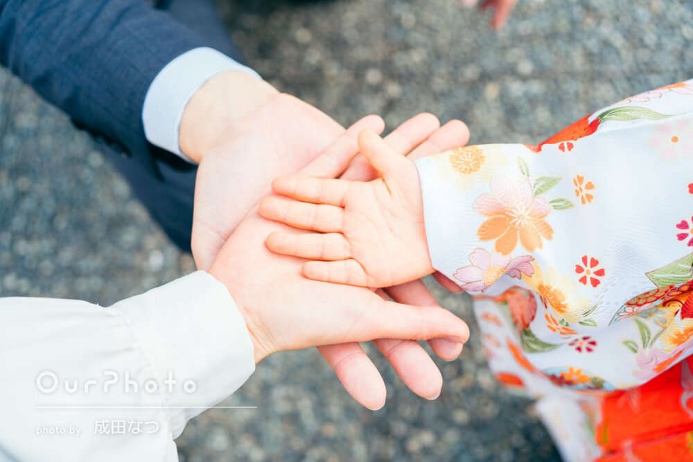 重ねた手から伝わる!お子さまの成長を喜ぶご家族の素敵な七五三の撮影OurPhoto アワーフォト。