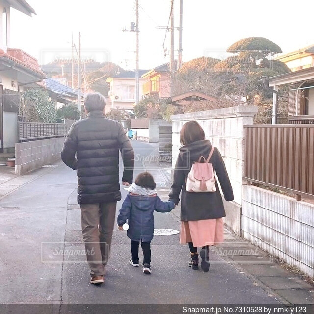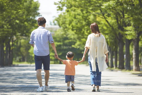 手を繋いで歩く日本人家族の後ろ姿21103655 の写真素材 - アフロ。