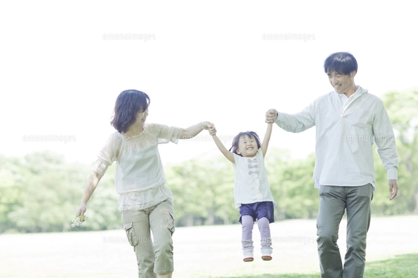 手を繋ぐ笑顔の日本人家族25493646 の写真素材 - アフロ。