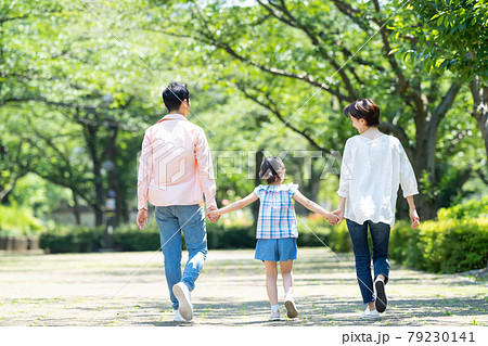 手を繋いで歩く日本人家族の写真素材129303826- イメージマート。