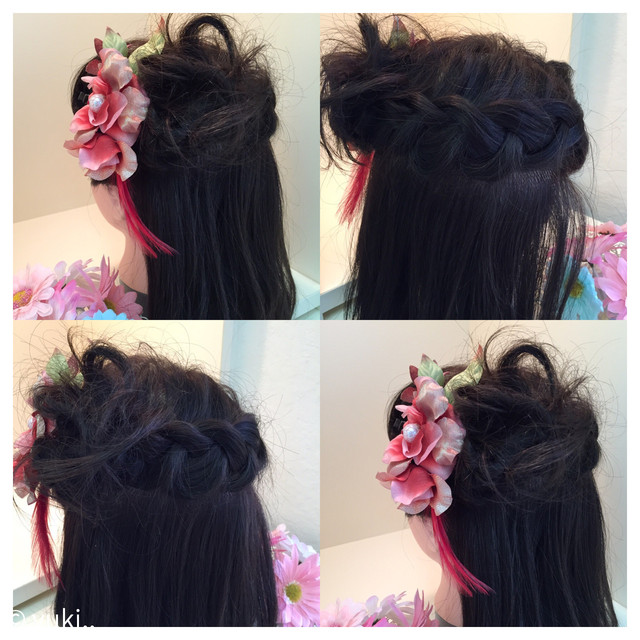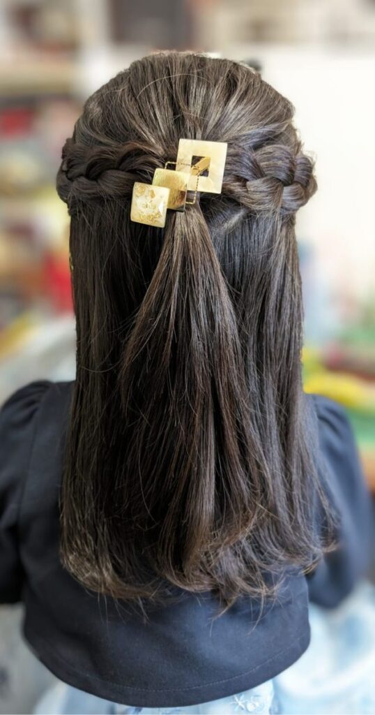 ピンを使わないヘアアレンジ!子供にもオススメ!三つ編みハーフアップhair works &SOL's Hairstyles。