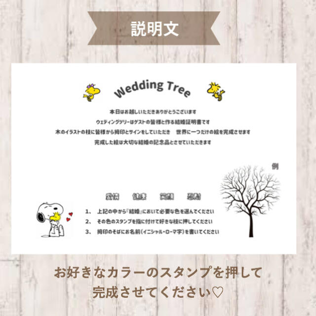 招待状+返信はがきをデザインしますスヌーピー大好き!な新郎新婦さまへココナラ。