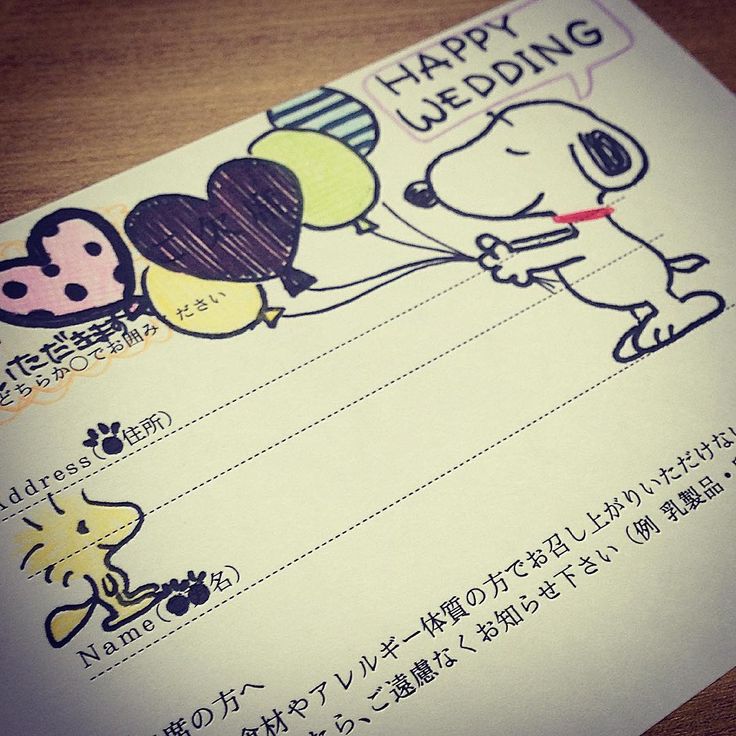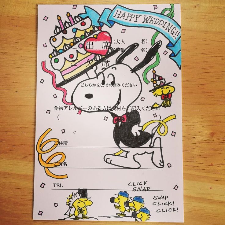 スヌーピー招待状」のアイデア 10 件スヌーピー, 返信ハガキアート, 招待状 返信 イラスト。