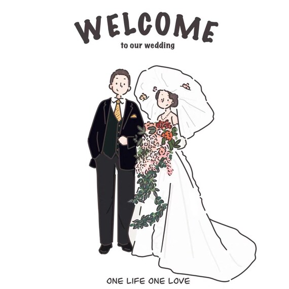 パーソナライズされたウェディングデジタルポートレートシンプルなスヌーピースタイルのイラストプリント結婚式招待状8時間で完成TD - Etsy 日本。