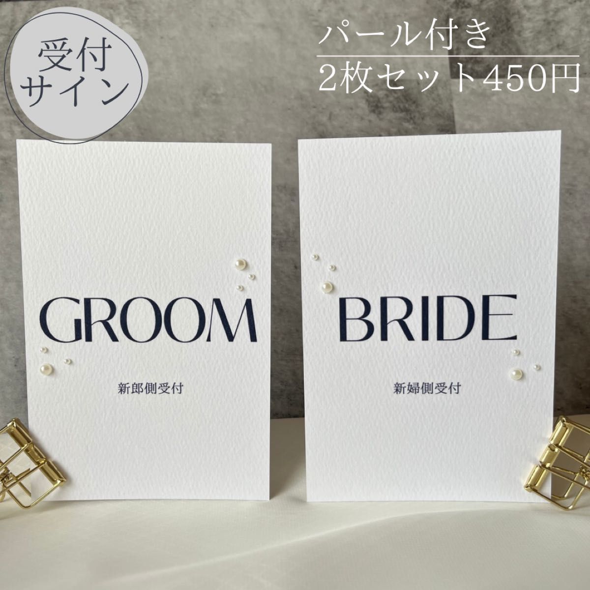 受付サイン 受付 結婚式 ウエディング ペーパーアイテム パール 新郎新婦受付 花嫁diy。