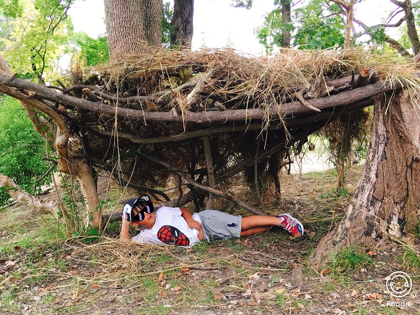 話題のブッシュクラフトで子供と秘密基地を作ってみた! - ラボブログバンライフラボ。