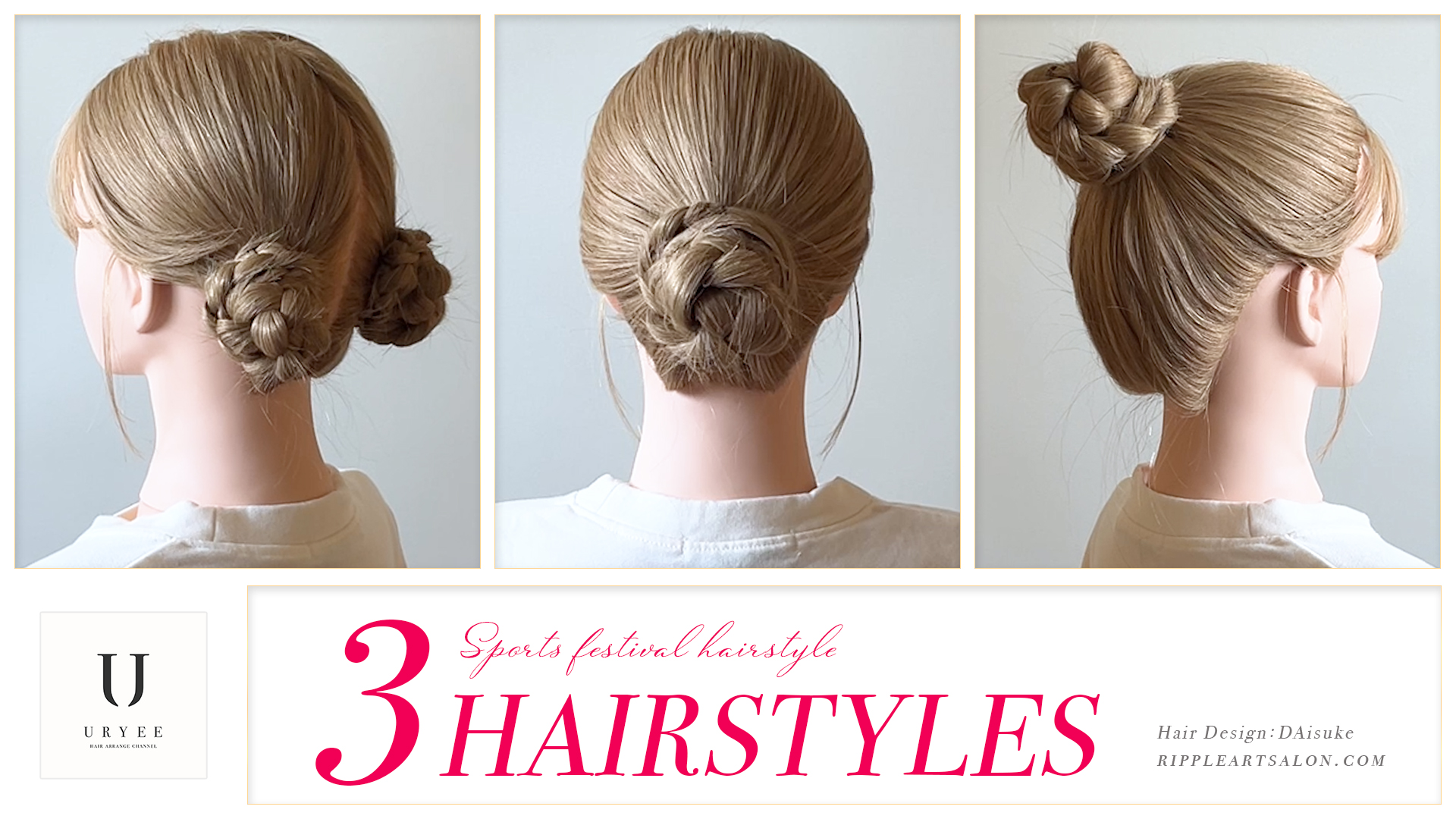 簡単 ヘアアレンジ 丸三つ編みでこなれお団子ヘアを作る。