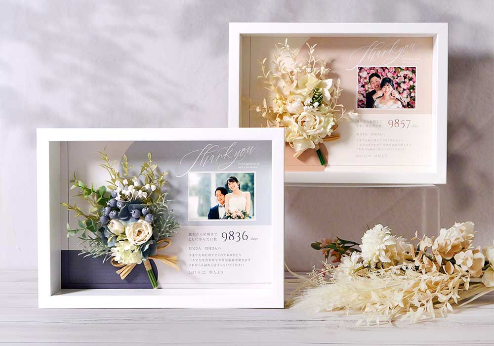ひとつ結婚式両親贈呈用 』結婚 両親 プレゼント フラワーアレンジ -名入れギフト いろは屋 - プレゼント&ギフトのギフトモールHanaya余暇 プリザーブドフラワー 写真立て 結婚祝い プレゼント おしゃれ 枯れない 花 結婚式 両親 贈呈品 人気 女性 ホ。