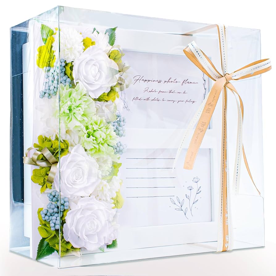 AmazonHanaya余暇 プリザーブドフラワー 写真立て 結婚祝い プレゼント おしゃれ 枯れない 花 結婚式 両親 贈呈品 人気 女性ホワイト L版 ブリザードフラワープリザーブドフラワー オンライン通販。