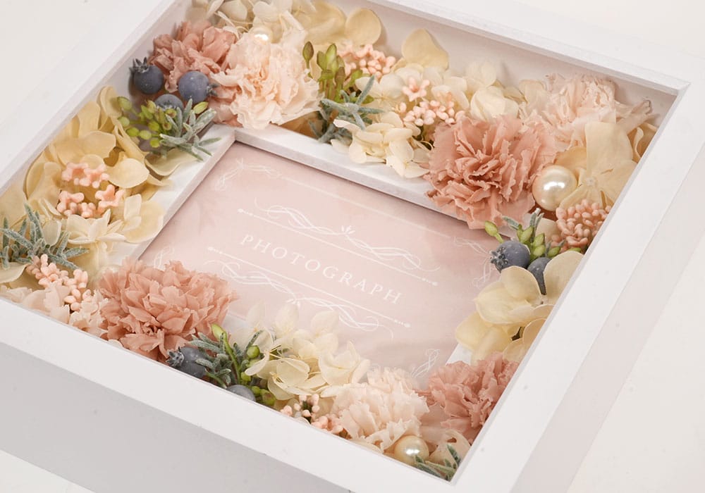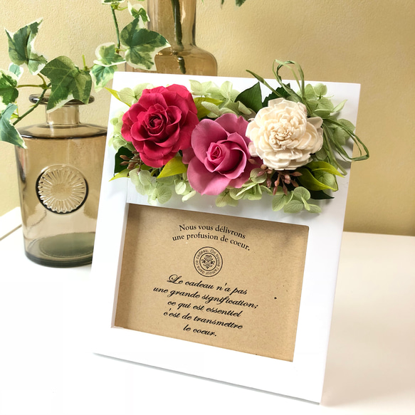 フォトフレーム ピンク系☆プリザーブドフラワー ウェディング 結婚祝い 両親プレゼント プリザーブドフラワー bless flower 通販7833895Creema クリーマ。