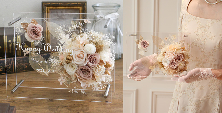 子育て感謝状 ドライフラワー 両親贈呈品 ウェディング 結婚式 両親プレゼント 両親贈呈品 ドライ・プリザーブドフラワーの花束付クリアサンクスボード 子育て感謝状mille la chouetteミルラシュエット。