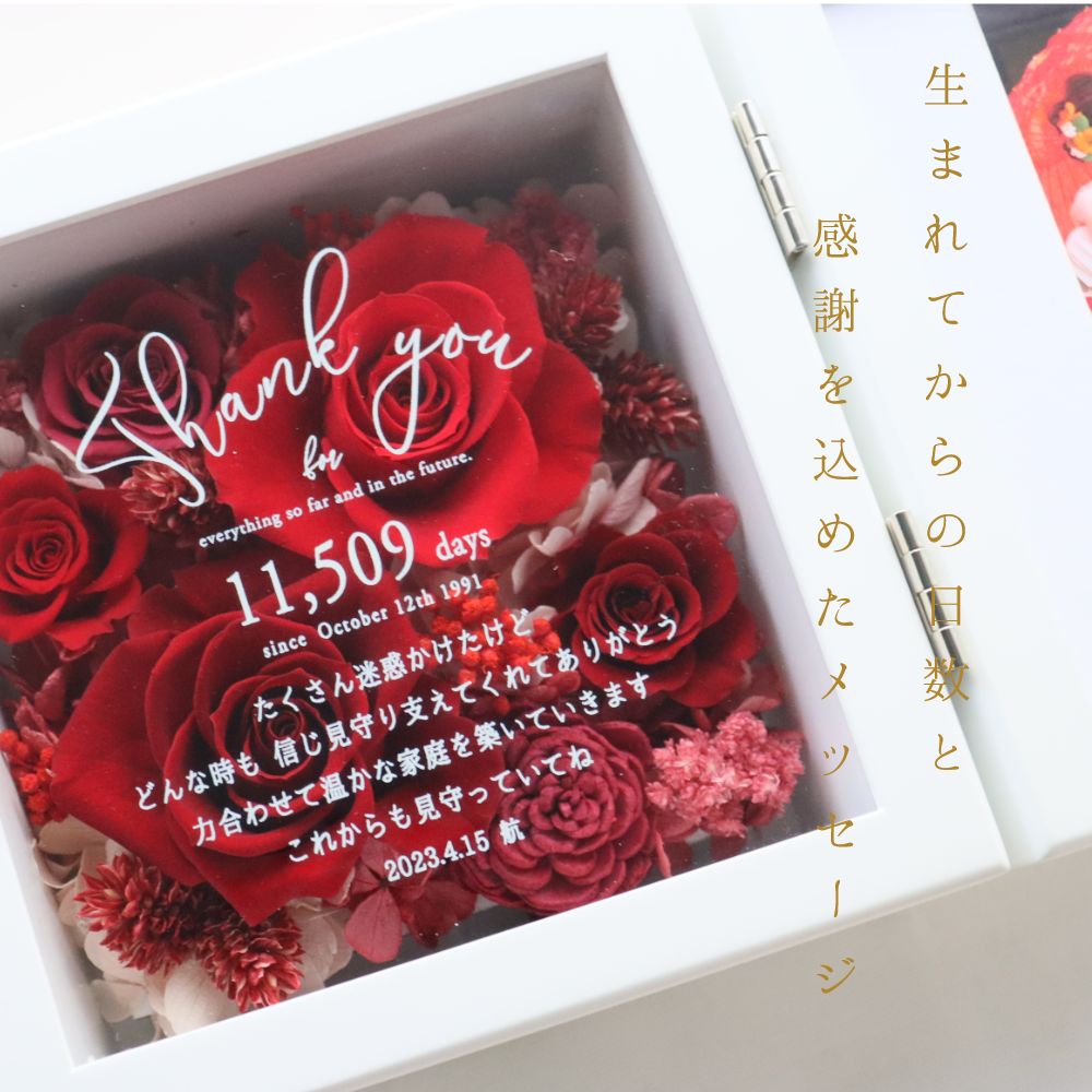 両親贈呈品 ブライダル プリザーブド フラワー 選べる3色 文字入れOK 両親贈呈品 子育て感謝状 結婚祝い 還暦祝い 誕生日 写真立て ギフトフォトフレーム 披露宴 結婚式 プリザーブドフラワーEtcouleur powered by BASE。