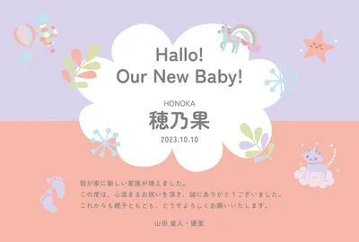 出産祝いの葉書・カード1 無料テンプレート テンプレートミリオン。