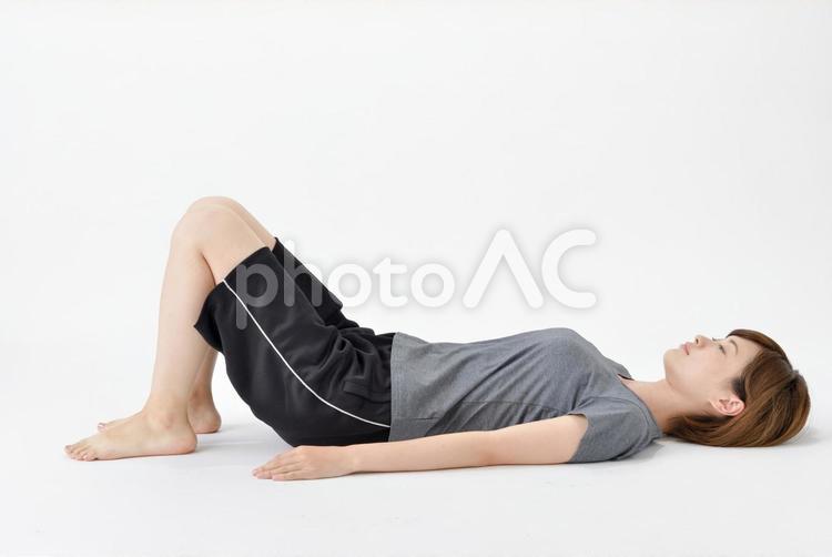 仰向けで膝を立てて寝る女性 - No: 1352654写真素材なら「写真AC」無料 フリー ダウンロードOK。