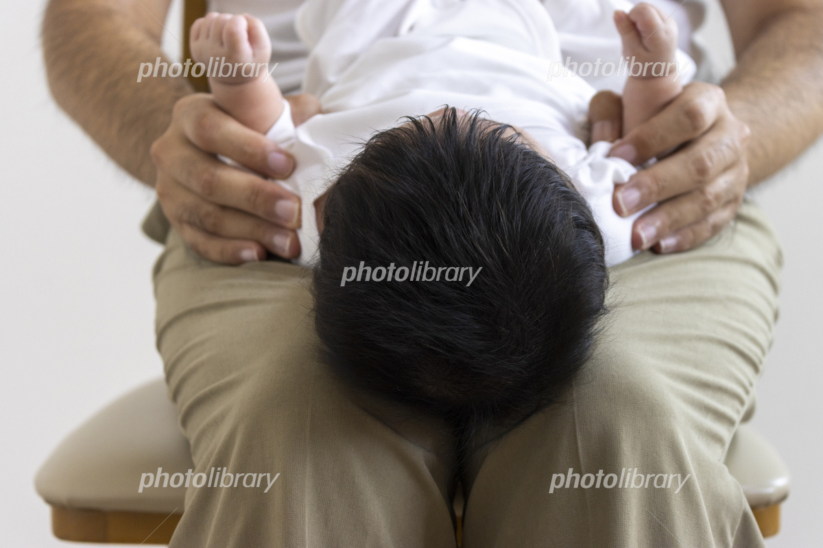 赤ちゃんを膝の上にのせてあやす男性 写真素材6570199- フォトライブラリ。