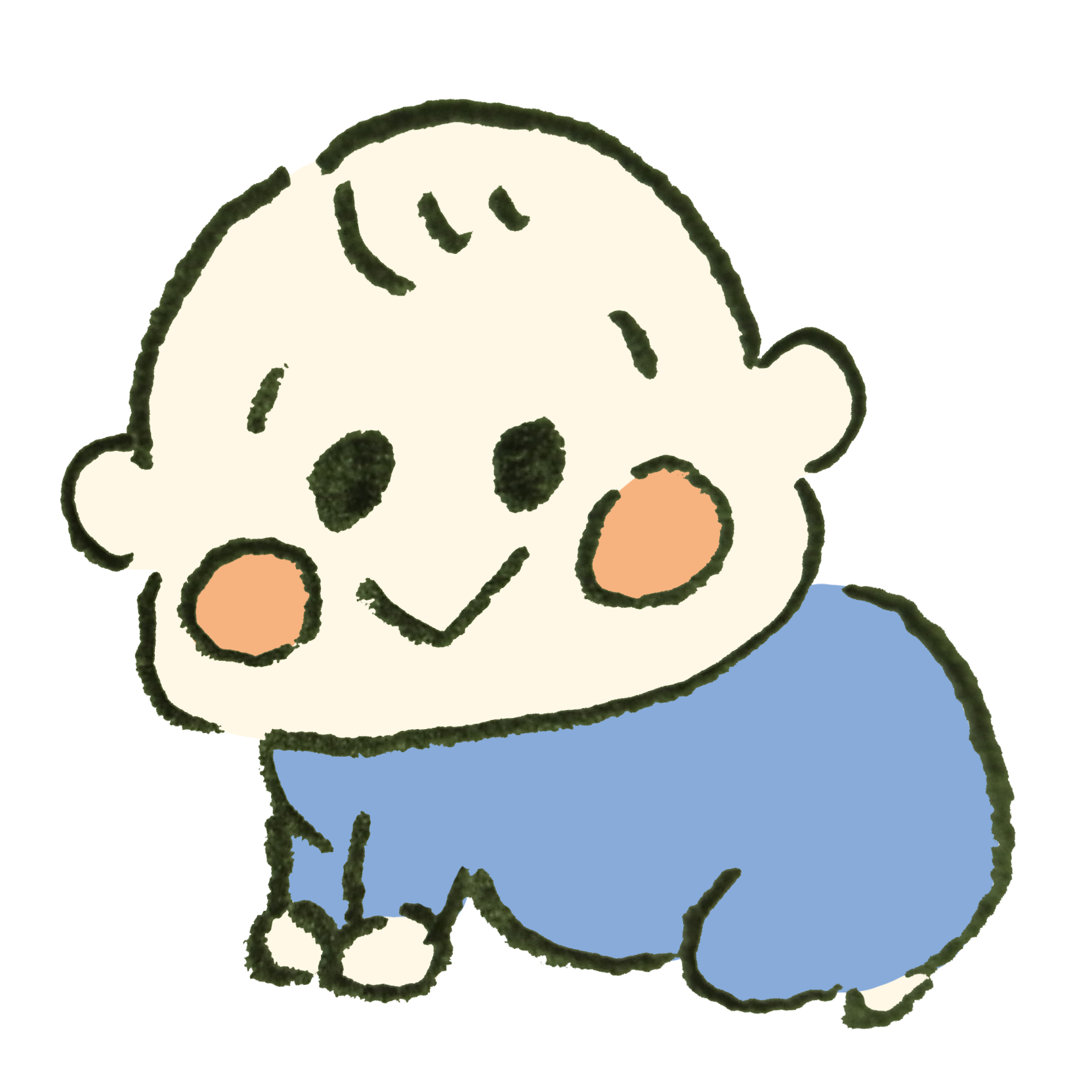 座っている赤ちゃんの無料 フリー イラストかわいい手描きの無料素材「てがきっず」保育園・小学校・介護施設にぴったりのフリー素材イラスト。