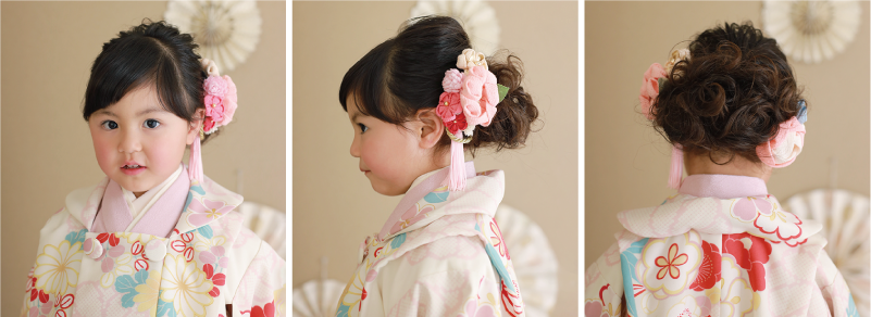 3歳の女の子の七五三に人気の髪型・簡単ヘアアレンジ紹介こども写真館プレシュスタジオ。