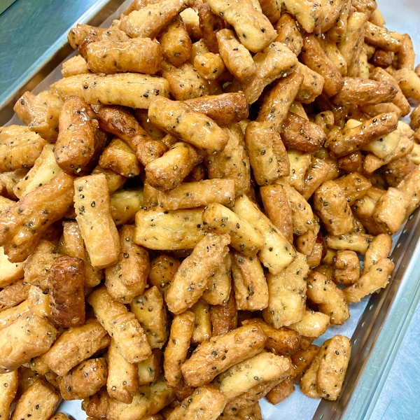 𖤣𖥧𖥣。 保育園おやつレシピ ごま米粉クラッカー * ザクザク食感で咀嚼力が鍛えられるよ✨材料未満児1人あたり 米粉 8g 片栗粉 3g 砂糖 0.5g 塩 0.2g 豆乳 4g 油 4g ごま 0.6g ※白、黒どちらでも☺︎今回は両方使っ。