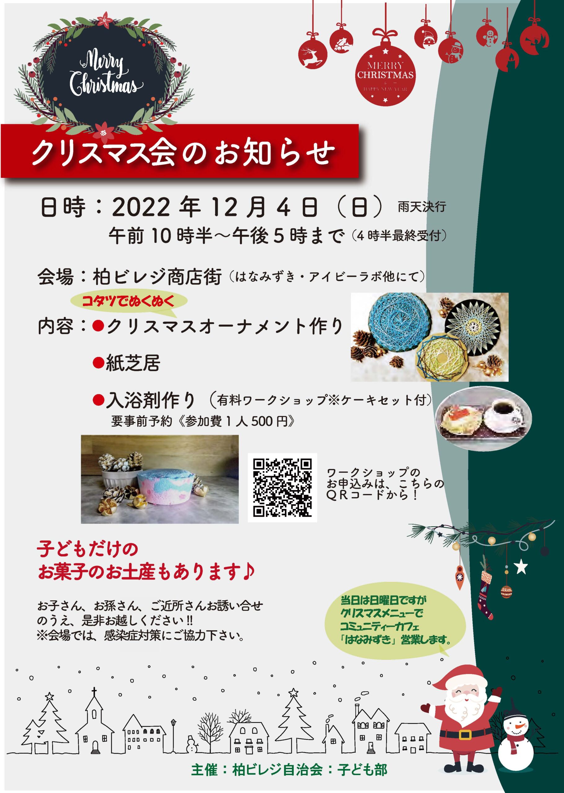 クリスマスパーティのお知らせ朝日まちづくり協議会。