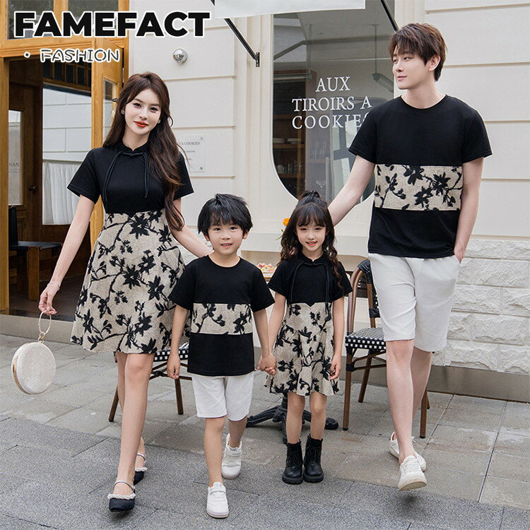 ≪人気≫リンクコーデ 親子ペアルック 親子でお揃い 柄シャツ 花柄 家族お揃い 親子セット 半袖シャツ ワンピース デニムパンツ 夏服 家族活動ins撮影 親子コーデ パパ ママ 息子 娘 男の子 女の子 の通販価格比較のビカム。