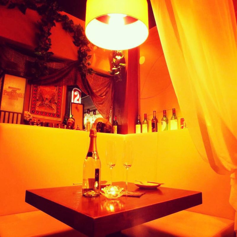 店内奥に、ひっそりと存在する カップルシート揺らめくロウソクの炎を眺めながら語らい お香の香りに癒されいつもとは違う非日常な空間を過ごす事ができます。 横並びのお席は、ぐっとお互いの距離が縮まり より絆が深まり、普段言えない話を語り合ったり出来るで。
