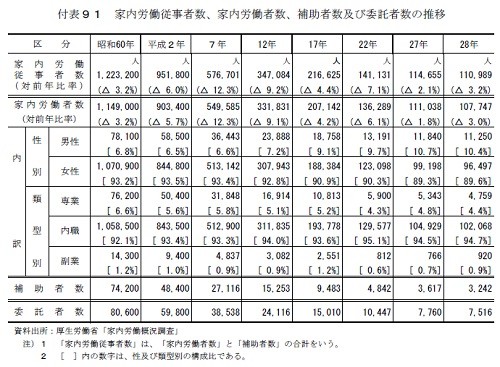 中古働く女性の実情 平成7年版 21世紀職業財団 労働省婦人局。