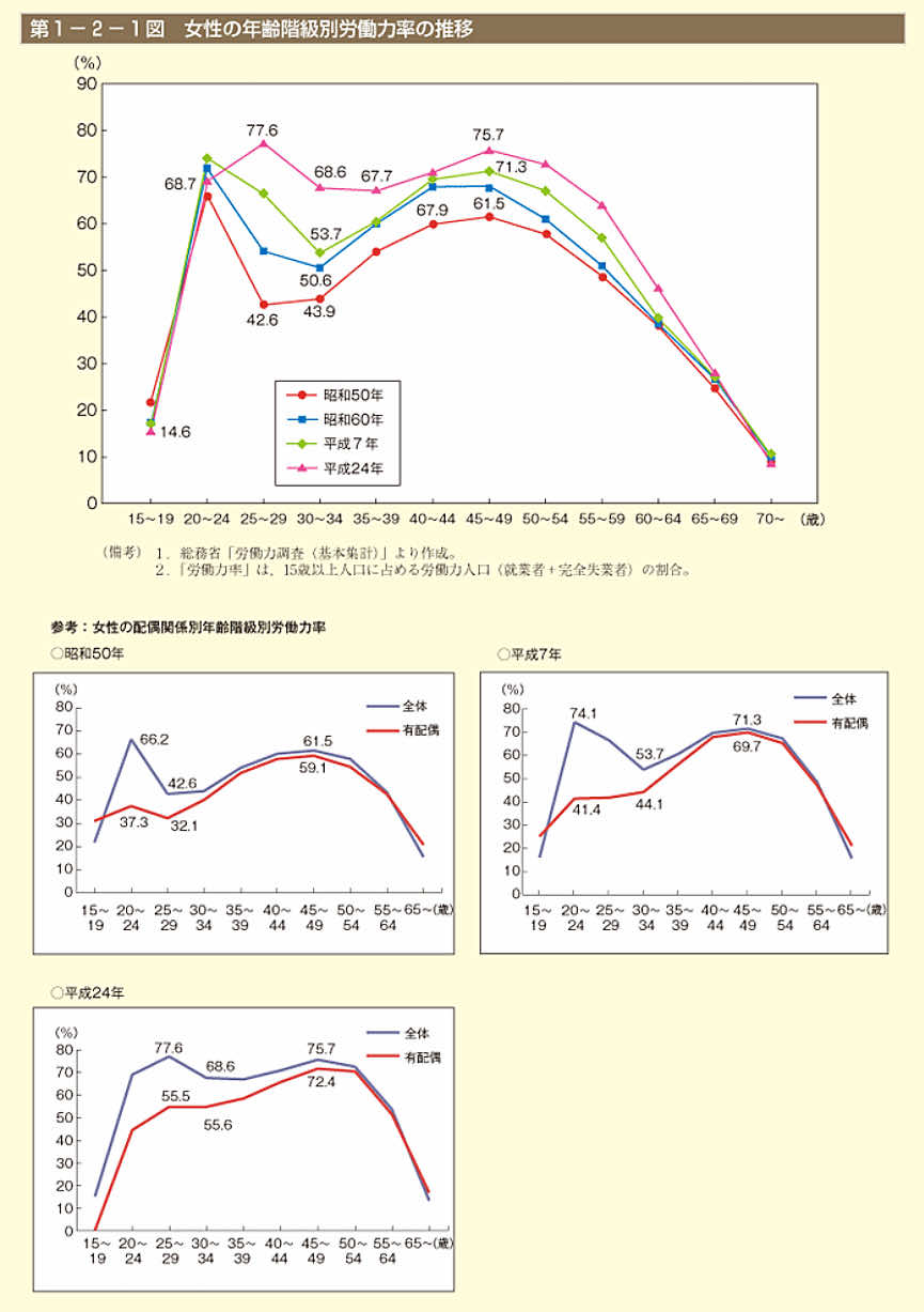 平成27年版働く女性の実情1:内容白書・統計数値情報: 社会保険労務士試験ブログ「佐藤塾」。