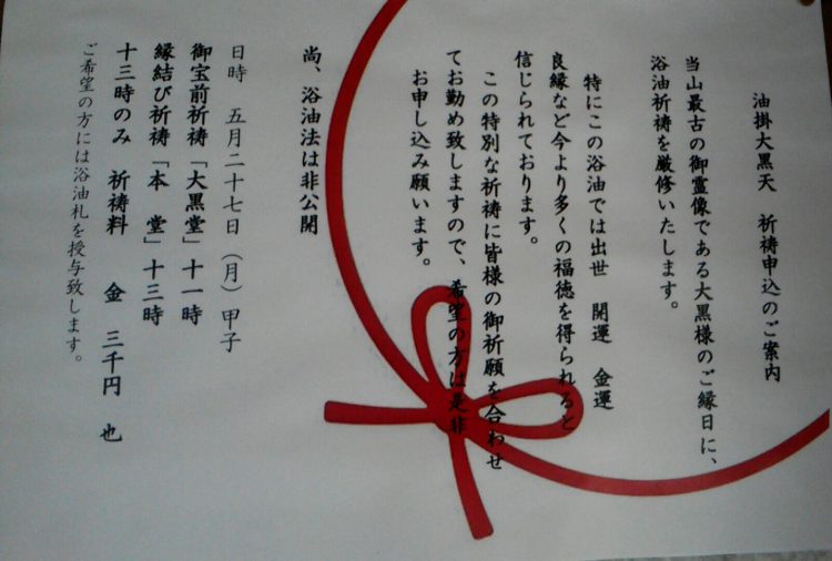 宮﨑名誉会長を偲ぶ会に参加しに東京へいった際に『待乳山聖天』で星祭の時に浴油祈祷をしていただいたお守りを頼んでいました。 浴油祈祷 とは、絶対秘仏の聖天さまをご供養する独特な祈祷法で、天台密教の修法の中でも秘法中の秘法、最も深秘の法とされております。 「浴。