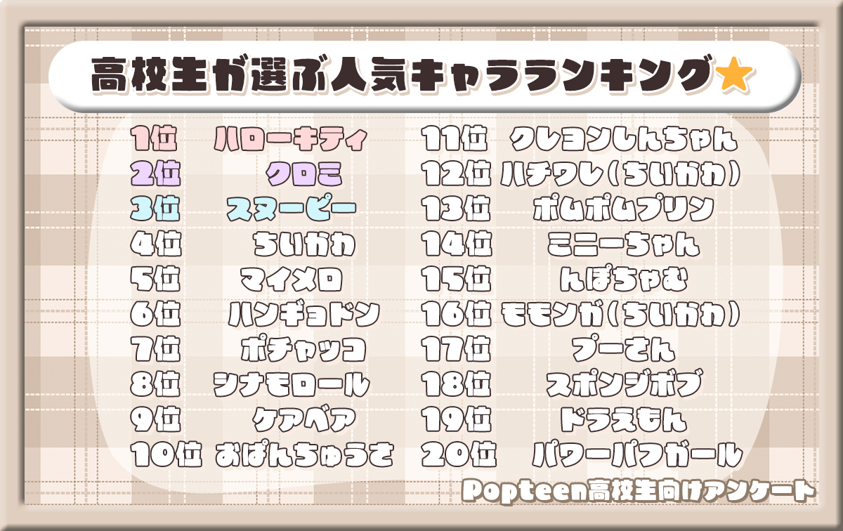 高校生に聞いた!人気のキャラクターランキングTOP30 2025年版。
