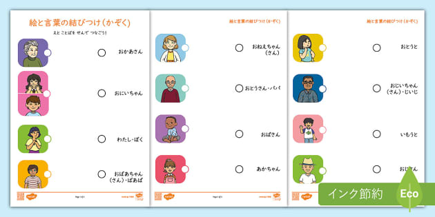 家族の呼び方絵と言葉のつなぎあわせプリント日本語版Twinkl。