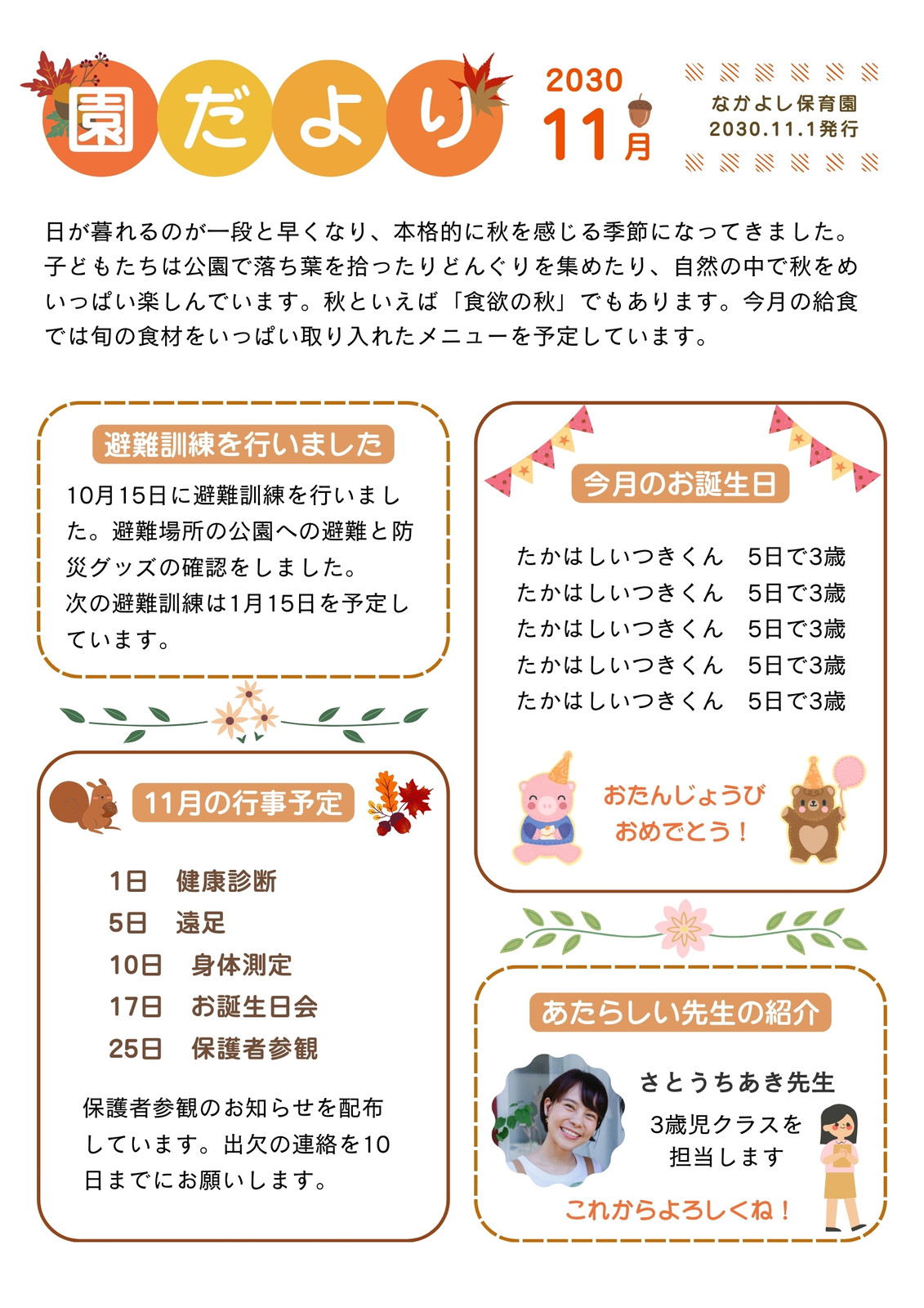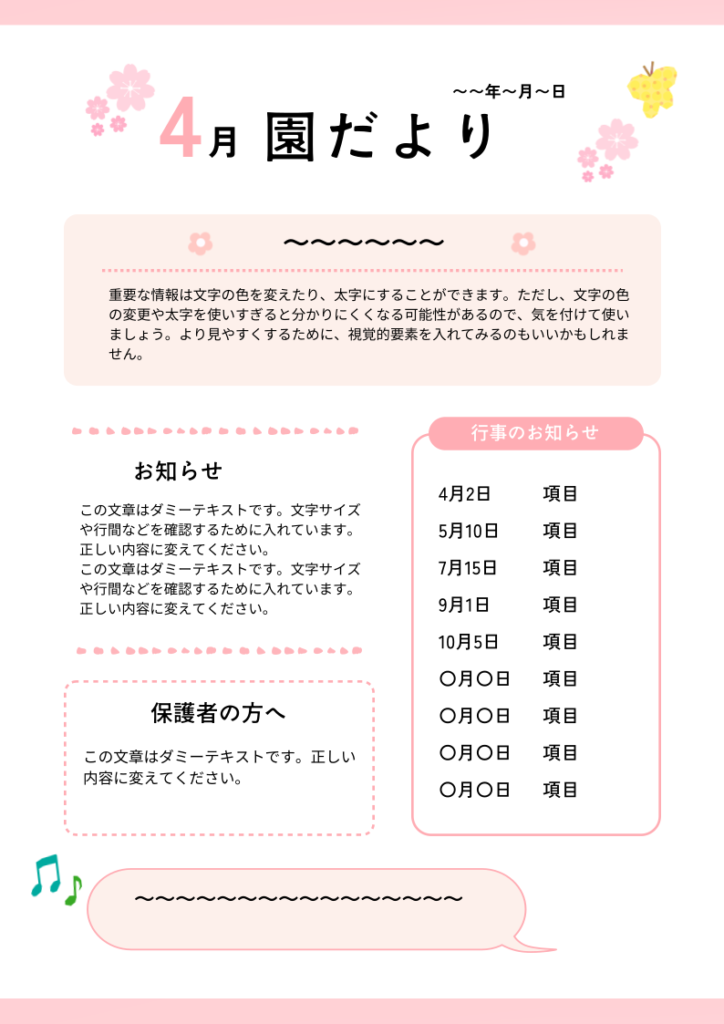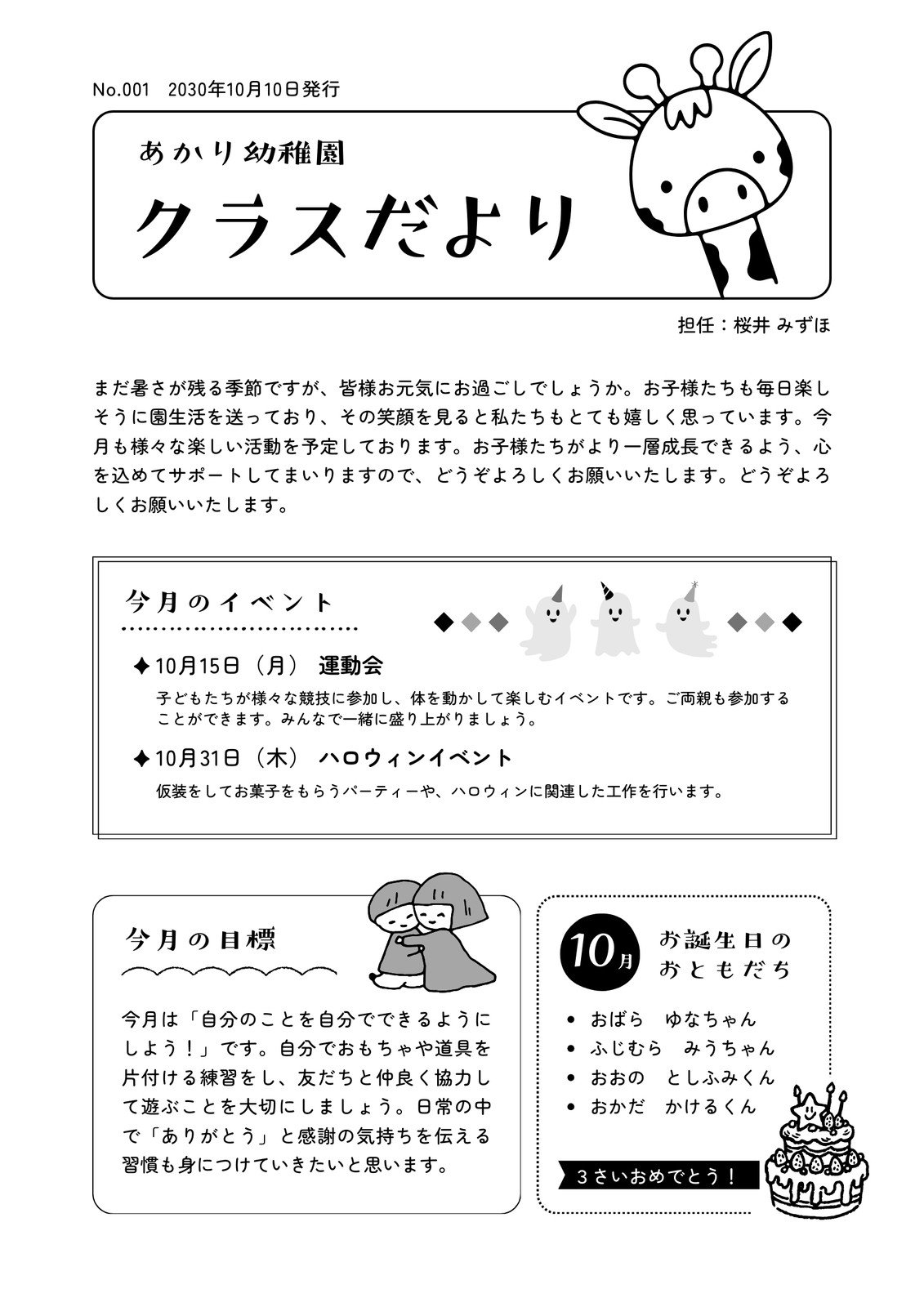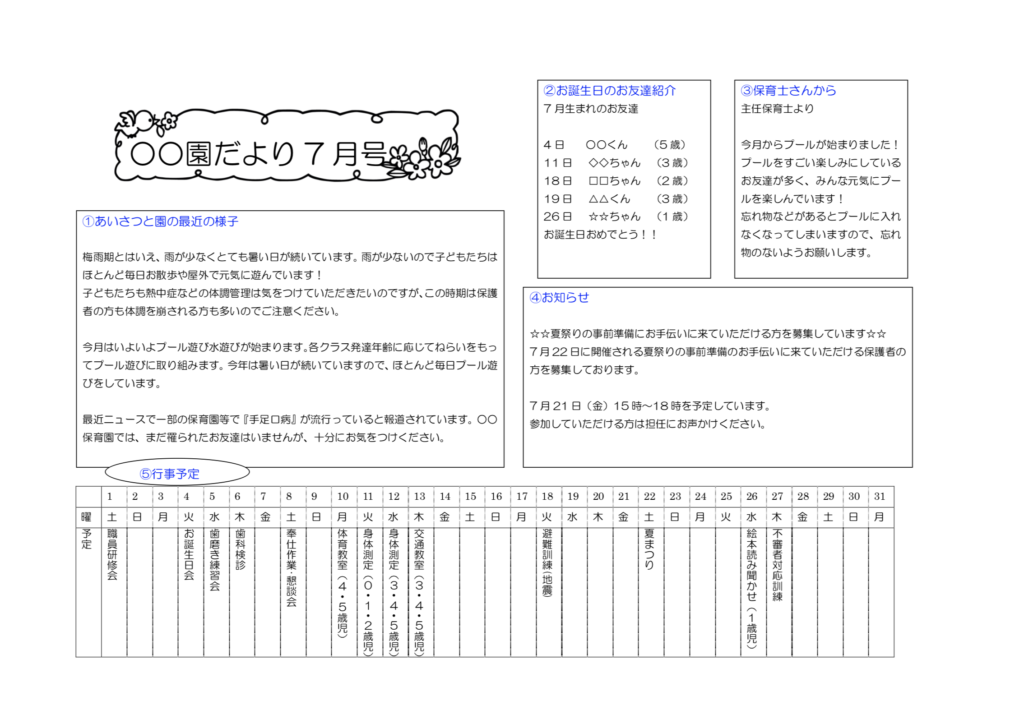 幼稚園・保育園で使うおたよりを作ります 幼稚園・保育園でそのまま使えるお便りをワードで提供ココナラ。