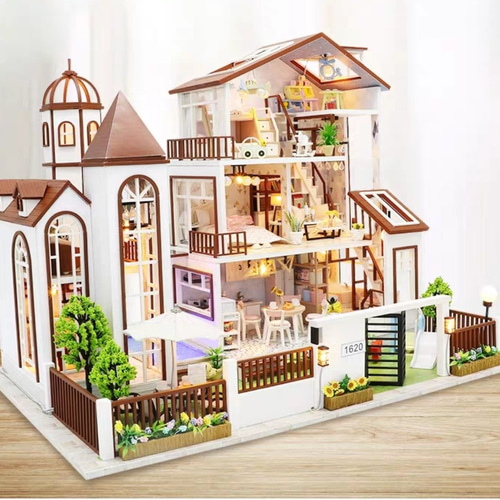 ドールハウス 完成品 ハンドメイド Amazonドールハウス完成品 ミニチュアハウス インテリア 海の家 二階建て ライト付き ケース付きドールハウス 手作りキットセット ミニ家具工芸品キット 防塵ケース付き 「威藍印记」 海辺の思い出 ドールハウスキット イラスト説明書。