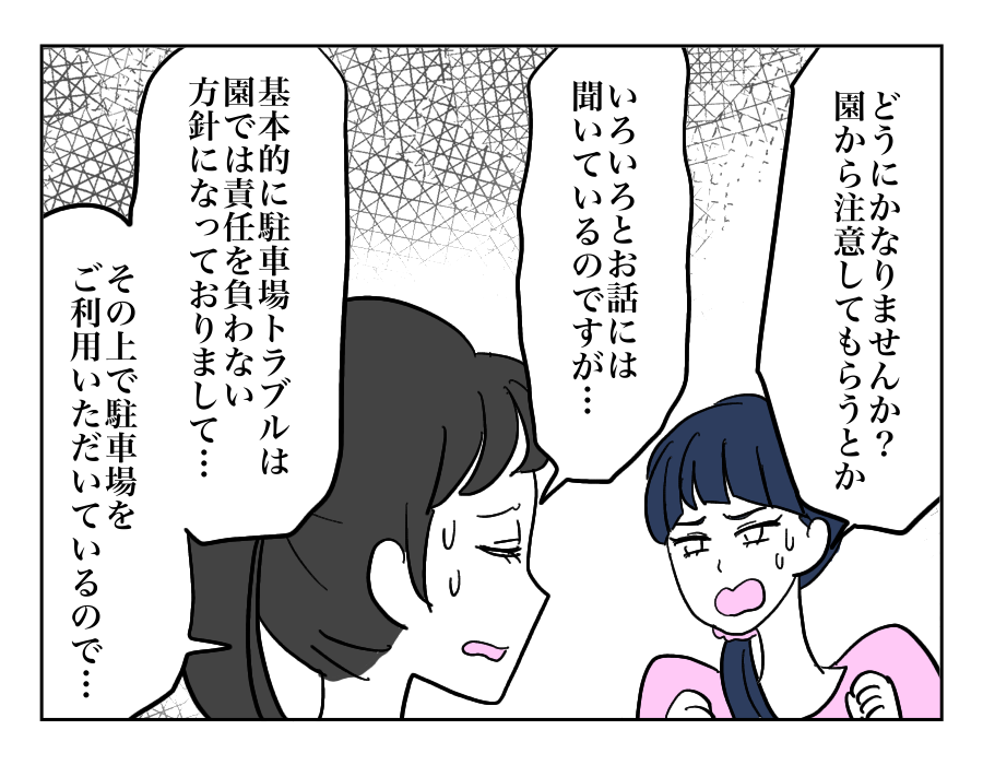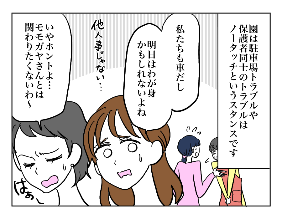 駐車場トラブル!原因は園ママ 駐車場トラブルはノータッチ!幼稚園の方針<第8話> 4コマ母道場ママスタセレクト。