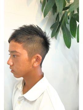 中学生男子カット ほぼボウズでいい位の短さとオーダーでしたのですっきりとおしゃれボウズに! 前髪は立ち上げて仕上げました♪ 凛々しく見えますね♡約1年振りに会いましたが背がかなり伸びて身長抜かされてました 笑ご来店ありがとうございました。