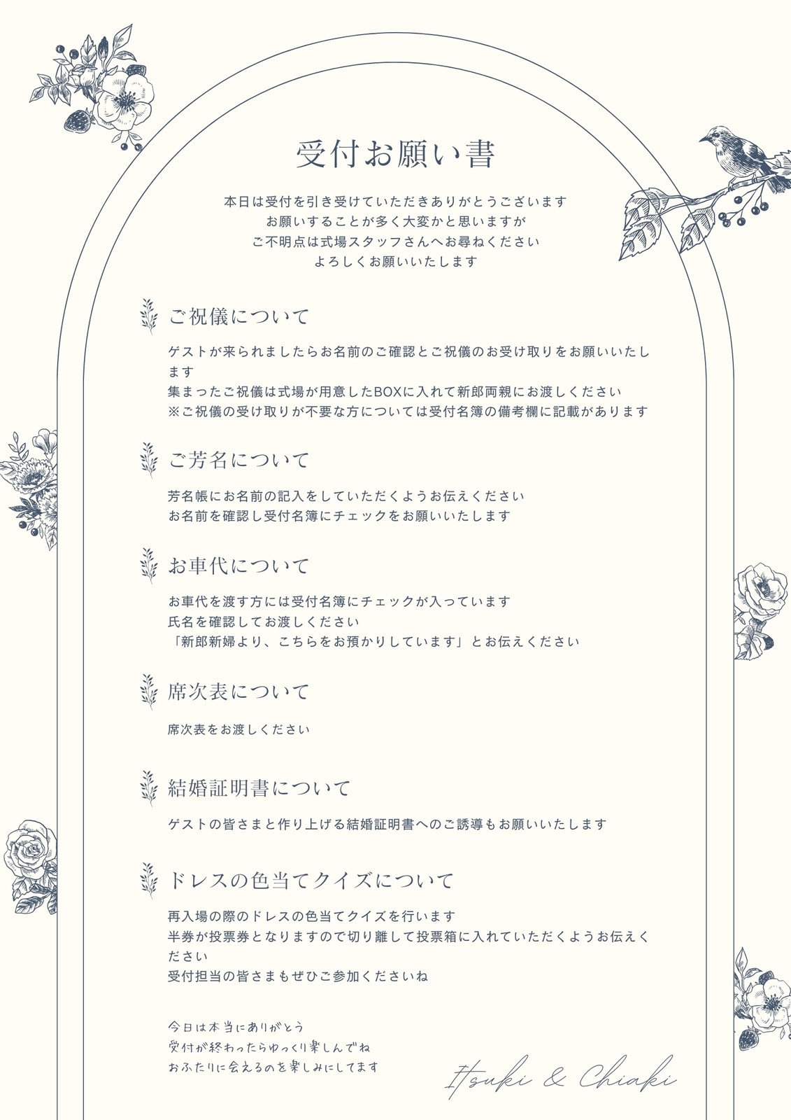 受付お願い書 結婚式無料テンプレートデザイン。イラストや画像付きも豊富 - Canva キャンバ。