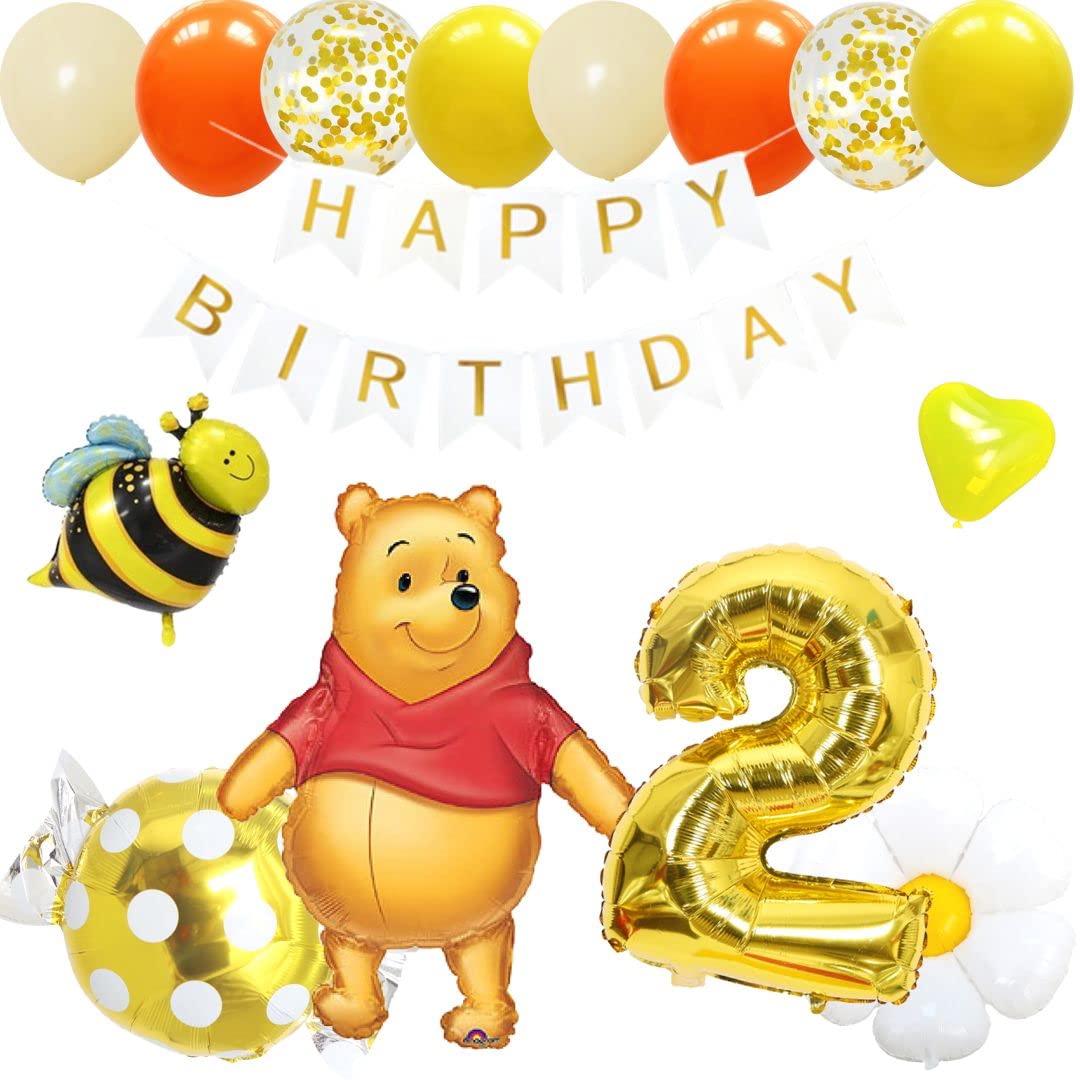 Amazonくまのプーさん 誕生日 飾り付け パーティー セット ディズニー キャラクター 可愛い イエロー ゴールド 女の子 男の子 子供バルーン 風船 happy birthday ケーキトッパー 30枚セット風船・バルーンおもちゃ。