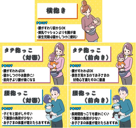 イラスト解説!いろんな抱っこの種類と抱き方ミルベビ。