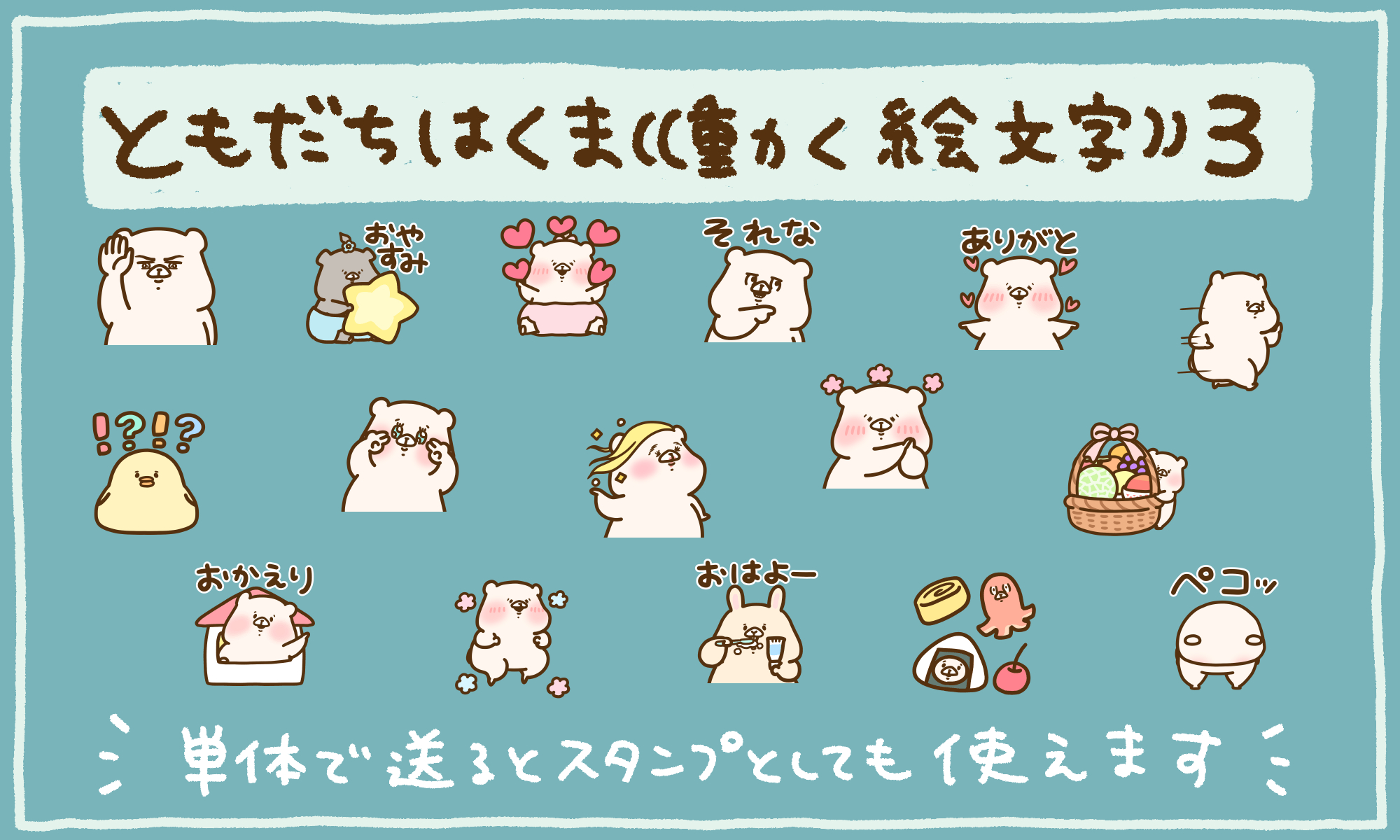 LINE絵文字「くまさんとおともだち」なかうちわか wacca。