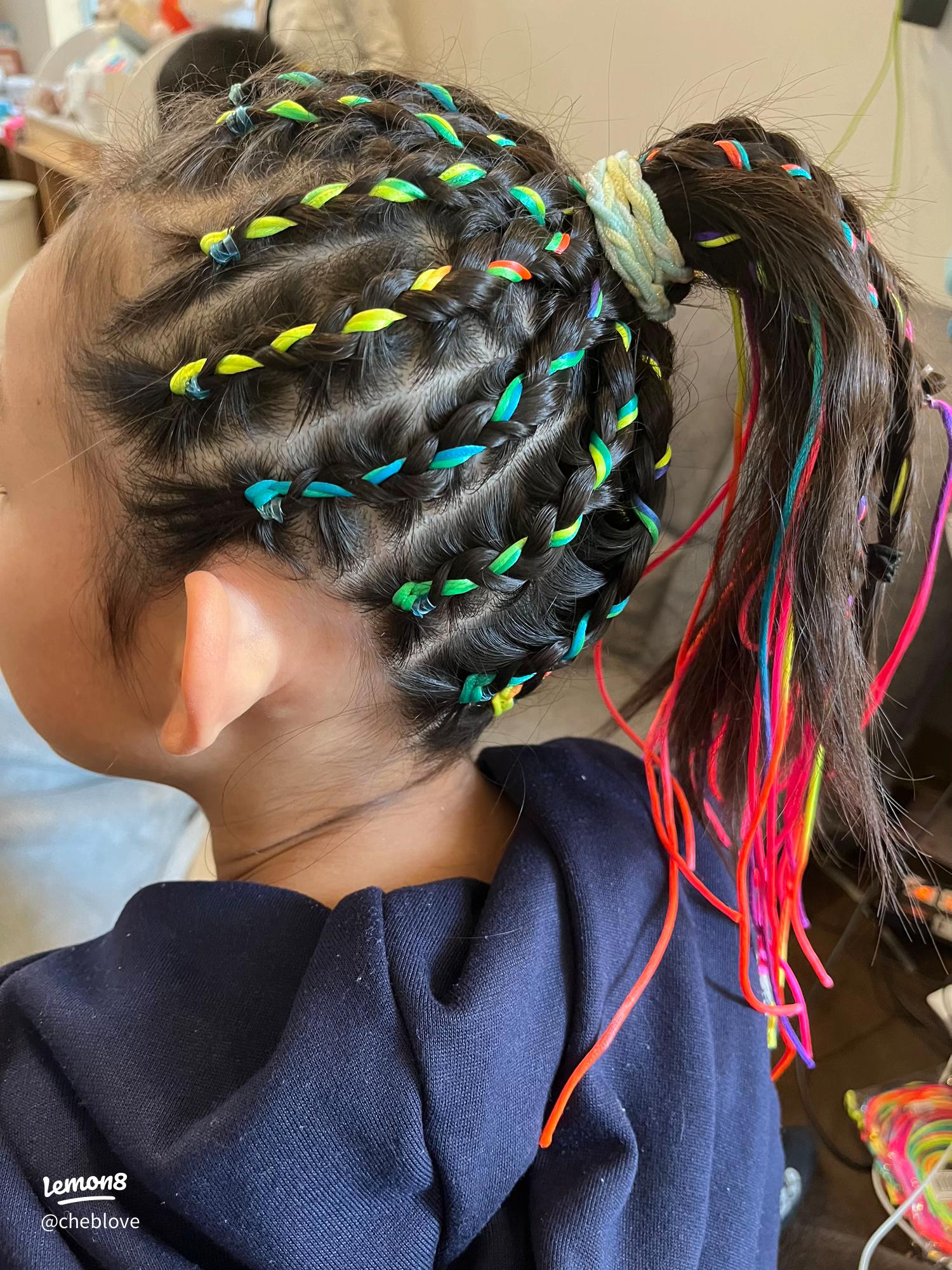 ダンスキッズヘアスタイル コーンロウより簡単なロープツイスト with エクステ カネカロンKanekalon。