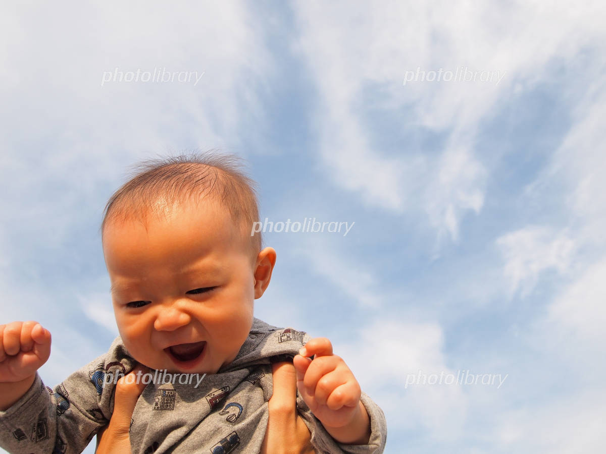 青空の下 赤ちゃんを高い高いをしてあやすお母さん 写真素材6056237- フォトライブラリ。