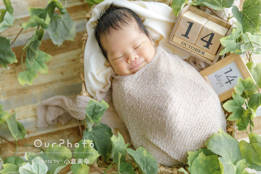 寝相アート 小物の”ちょい足し”で100日祝いの写真をかわいく!真似したくなるアイディア3選写真工房ぱれっとサッポロファクトリー店。