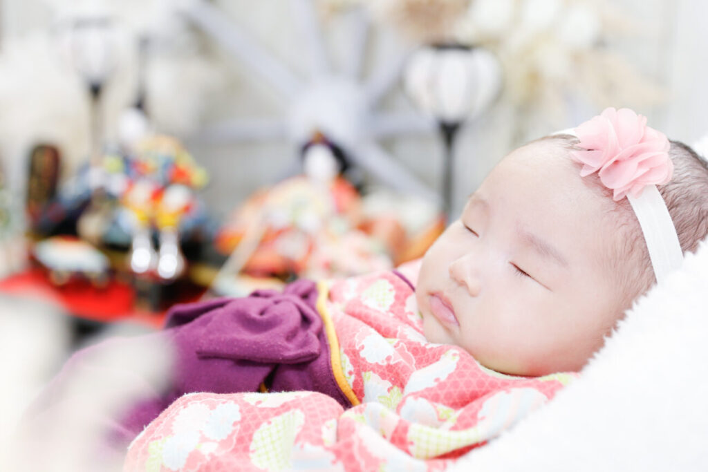 赤ちゃんの寝相アートでお祝いしよう!おうちでお宮参り!きものレンタリエのきもの豆知識。