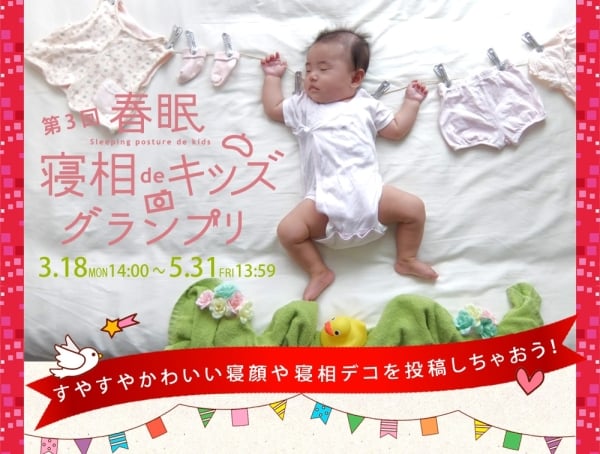可愛い寝顔と寝相画像で日本の春を元気にしたい。第3回『春眠 寝相deキッズグランプリ』世界睡眠デー 平成31年3月18日 月より開催中。株式会社プレジールのプレスリリース。