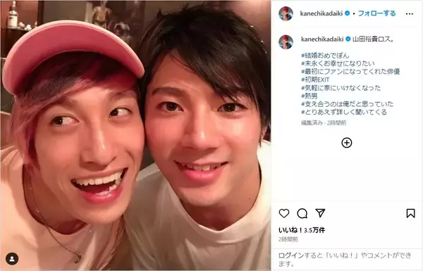 EXIT兼近、山田裕貴と西野七瀬の結婚を祝福!“ロス”な気持ちもポツリ「気軽に家にいけなくなった」E-TALENTBANK co.,ltd。