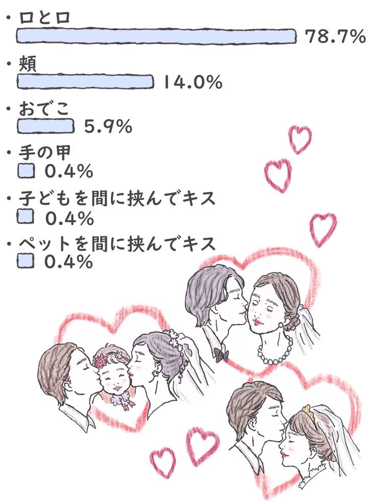 唇?ほっぺ?おでこ・あなたはどこに誓いのキスをする。