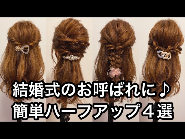 結婚式のお呼ばれに♪簡単ハーフアップ4選 - YouTube。