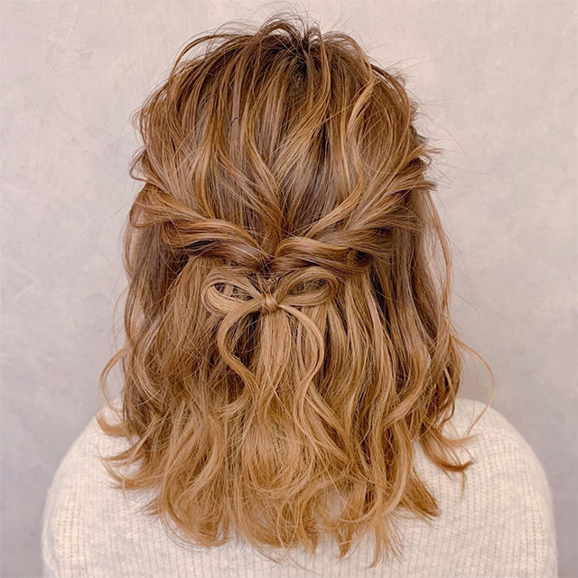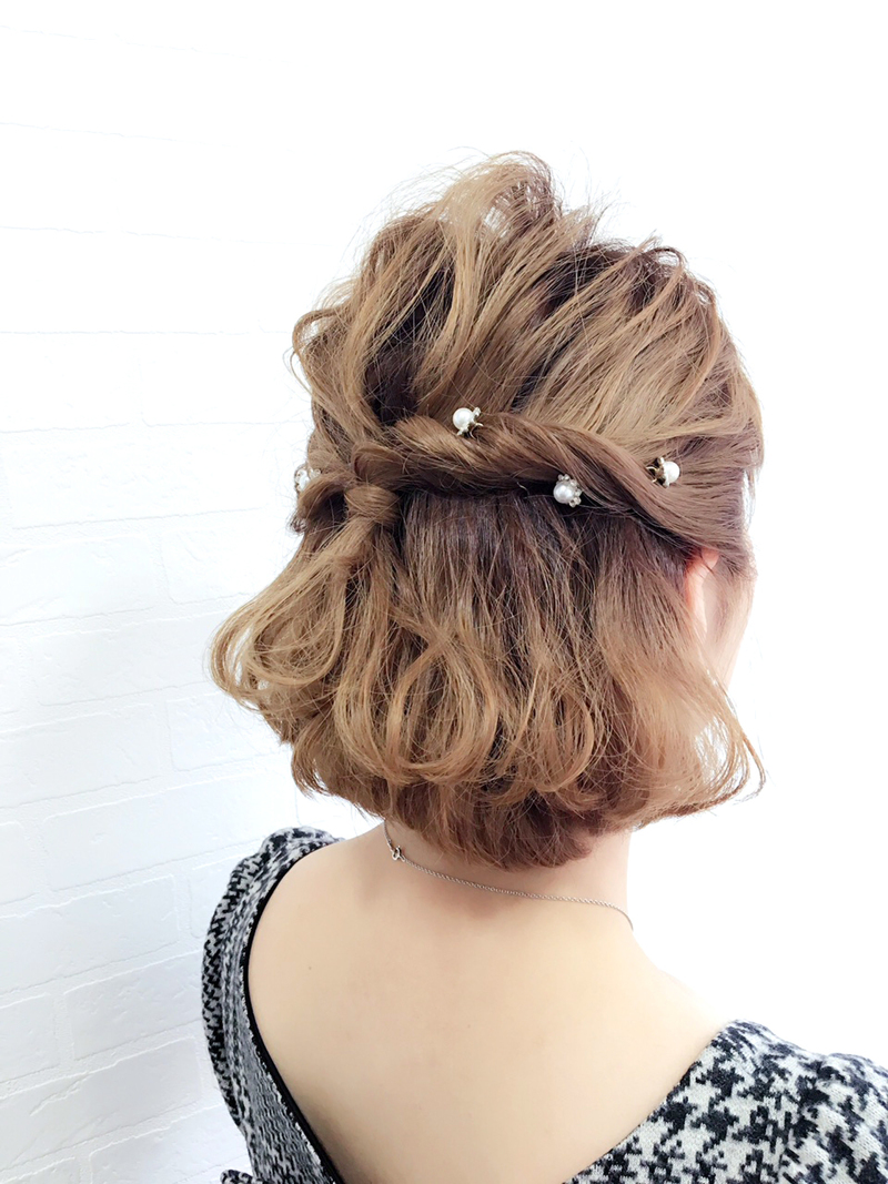 加古川・ヘアセット ボブでも出来る「キレイめハーフアップ」はフォーマルにもぴったり!!MITSUKI KODA.COM。