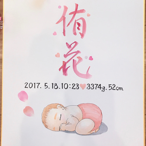 可愛い赤ちゃんの手描きのイラストが入った命名書♪オーダーもOK♪♡お洒落、インテリア、出産祝い・マタニティフォト 雑貨・その他paper☆design 通販 9517498Creema クリーマ。