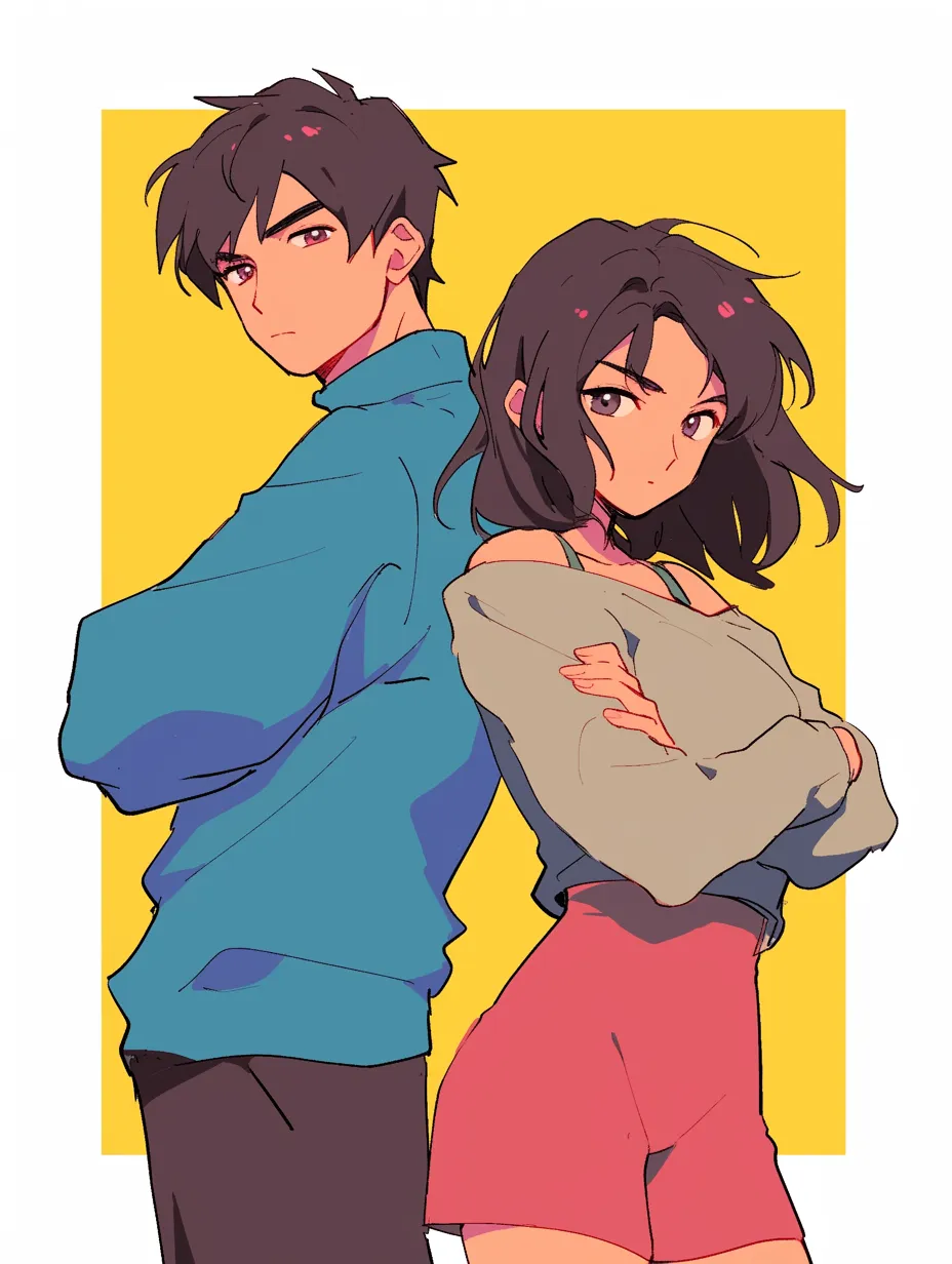 腕組みカップルの歩み寄りイラスト・フリー素材なら「シンテリ」。