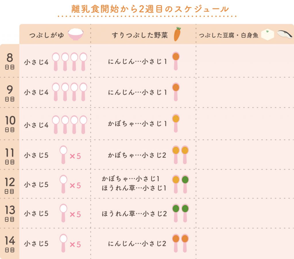生後5ヶ月 離乳食初期の進め方 量・スケジュール 回数や献立メニュー・おすすめレシピも紹介the kindest magazine。